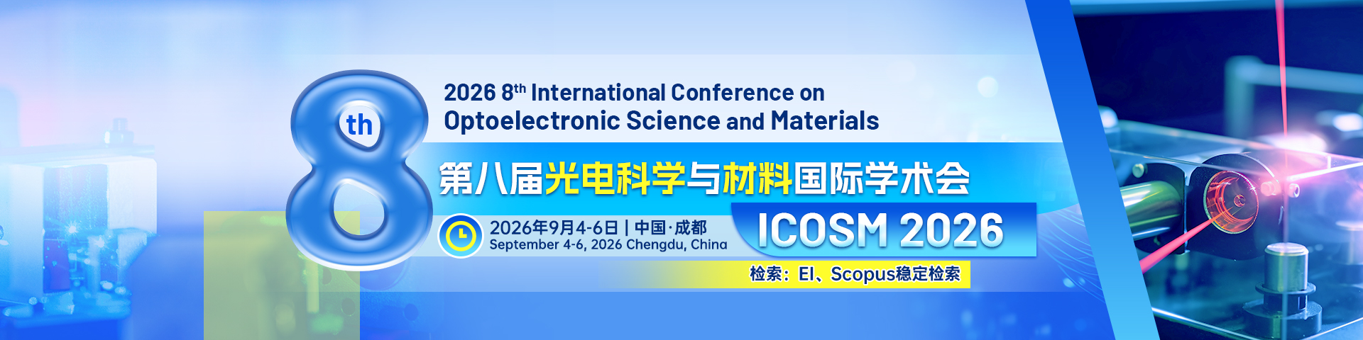 2026 8th International Conference on Optoelectronic Science and Materials (ICOSM 2026) will be held in Chengdu, China from September 4 to 6, 2026.
